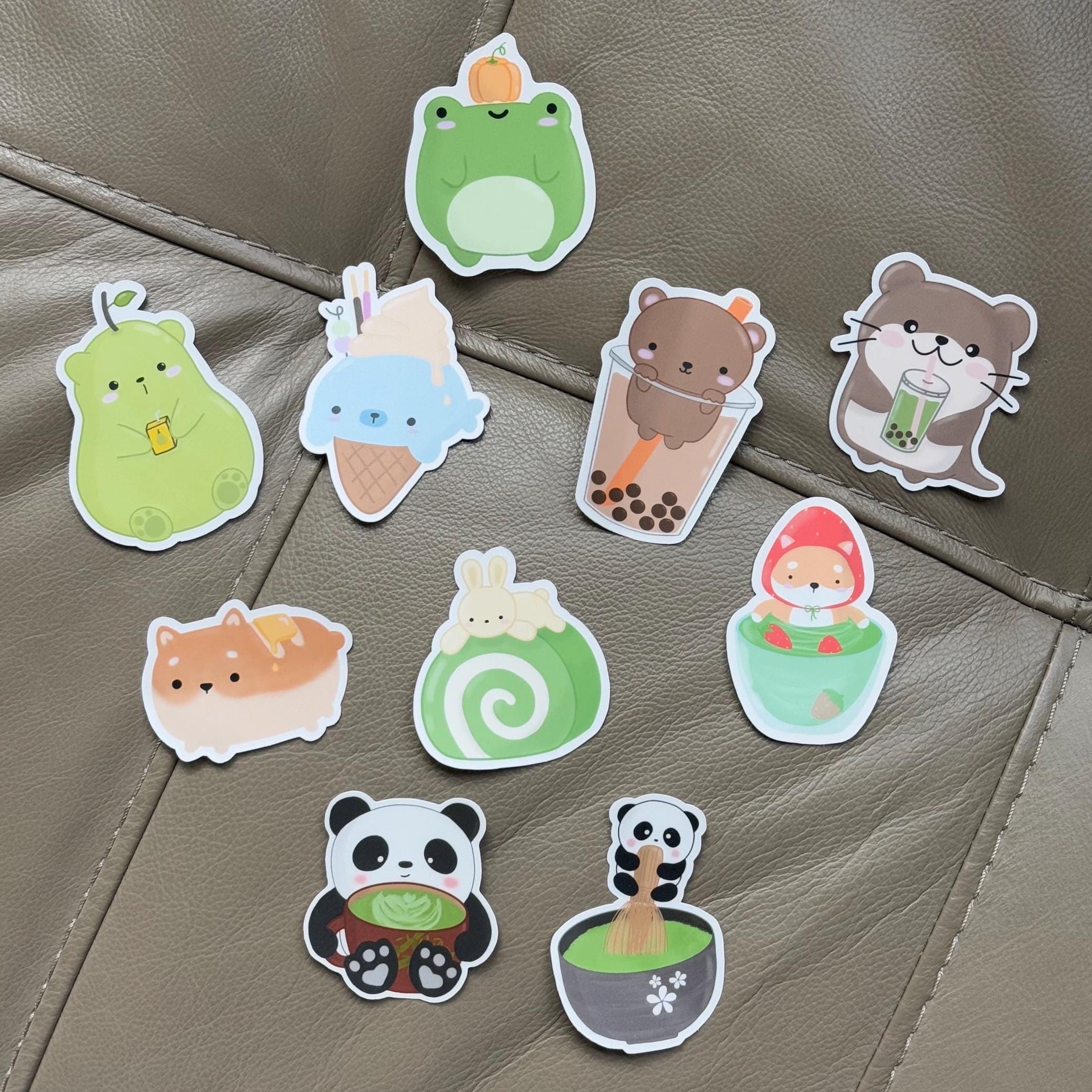 Matcha Latte Panda Waterproof Matte Vinyl Stickers